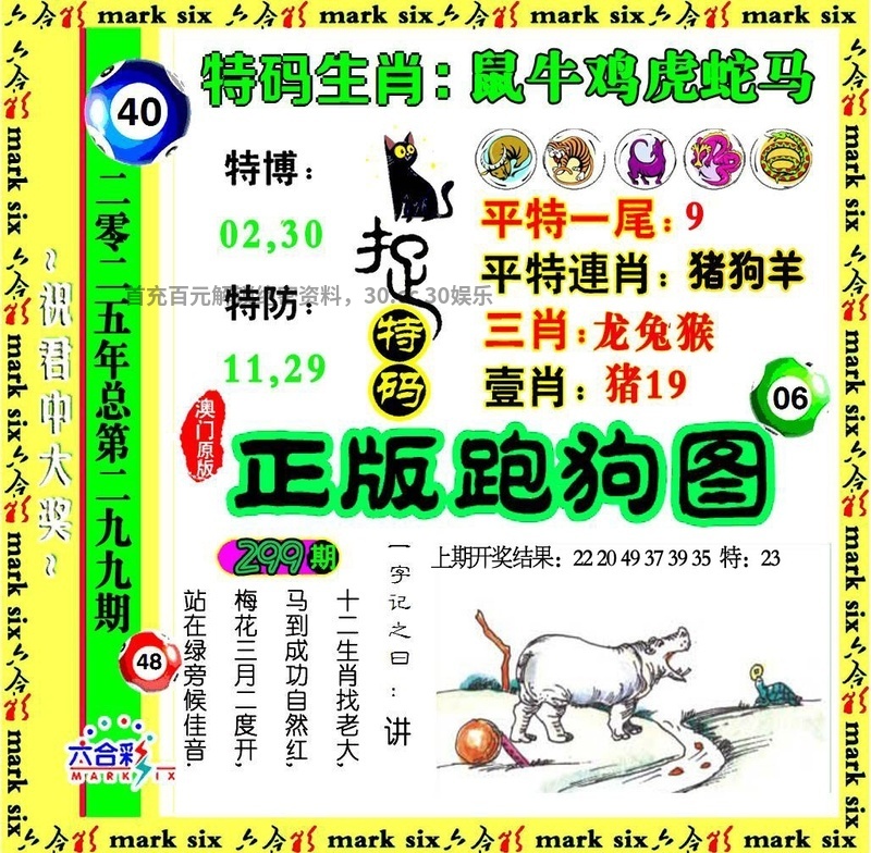301期【⑦肖中特】:狗马蛇鼠龙猴虎